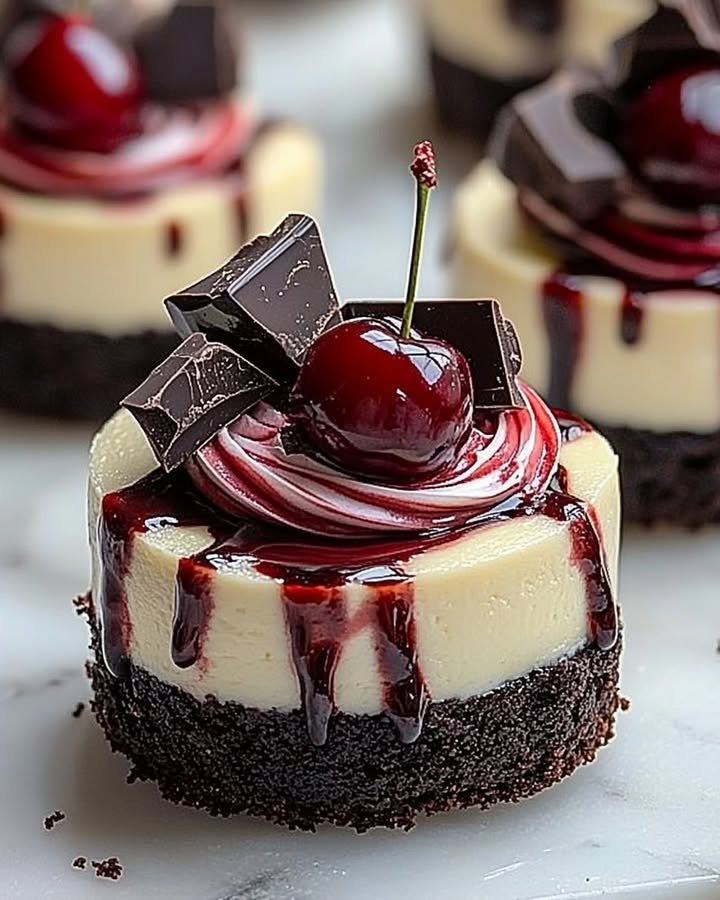 Black Forest Mini Cheesecakes Ingredients: For the Crust: 1 cup chocolate cookie crumbs 3 tbsp unsalted butter, melted For the Cheesecake Filling: 8 oz cream cheese, softened 1/4 cup granulated …