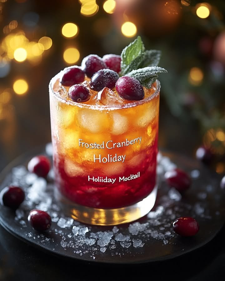 Frosted Cranberry Holiday Mocktail Ingredients: 1/2 cup cranberry juice 1/4 cup orange juice 1/4 cup sparkling water or lemon-lime soda 1 tablespoon grenadine optional, for layering Crushed ice Sugared cranberries …