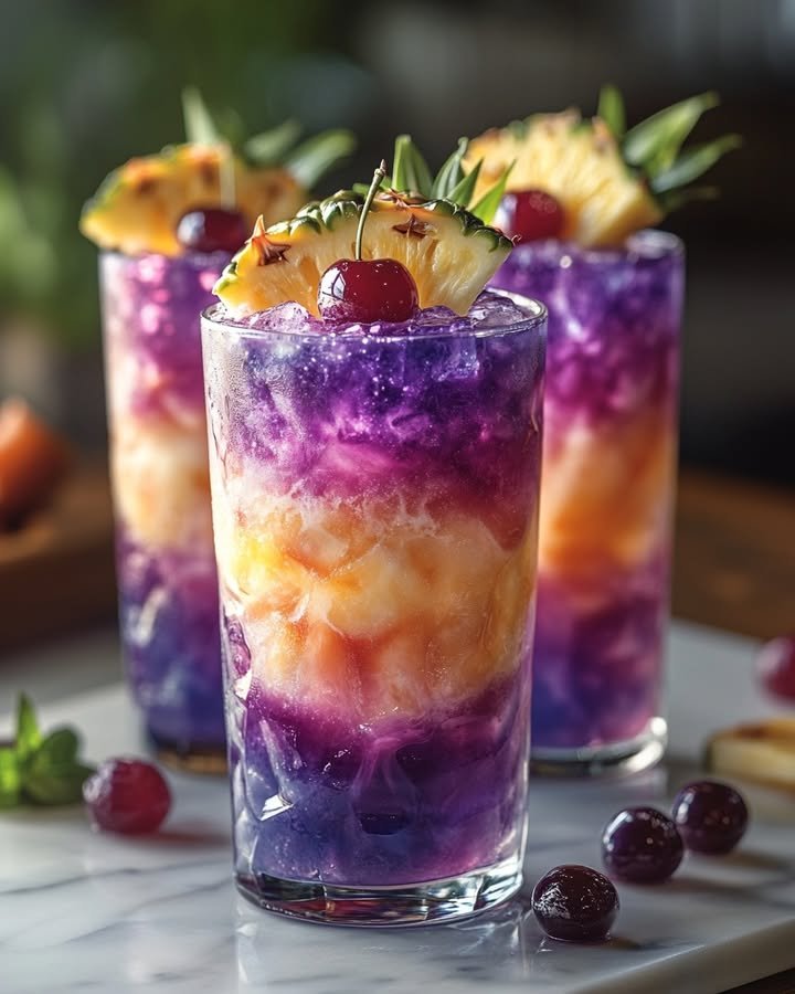 Galaxy Colors Piña Colada Recipe Ingredients: 1/2 cup coconut cream 便 1/2 cup pineapple juice 1/4 cup blue curaçao for cosmic color 1/4 cup purple grape juice or acai syrup …