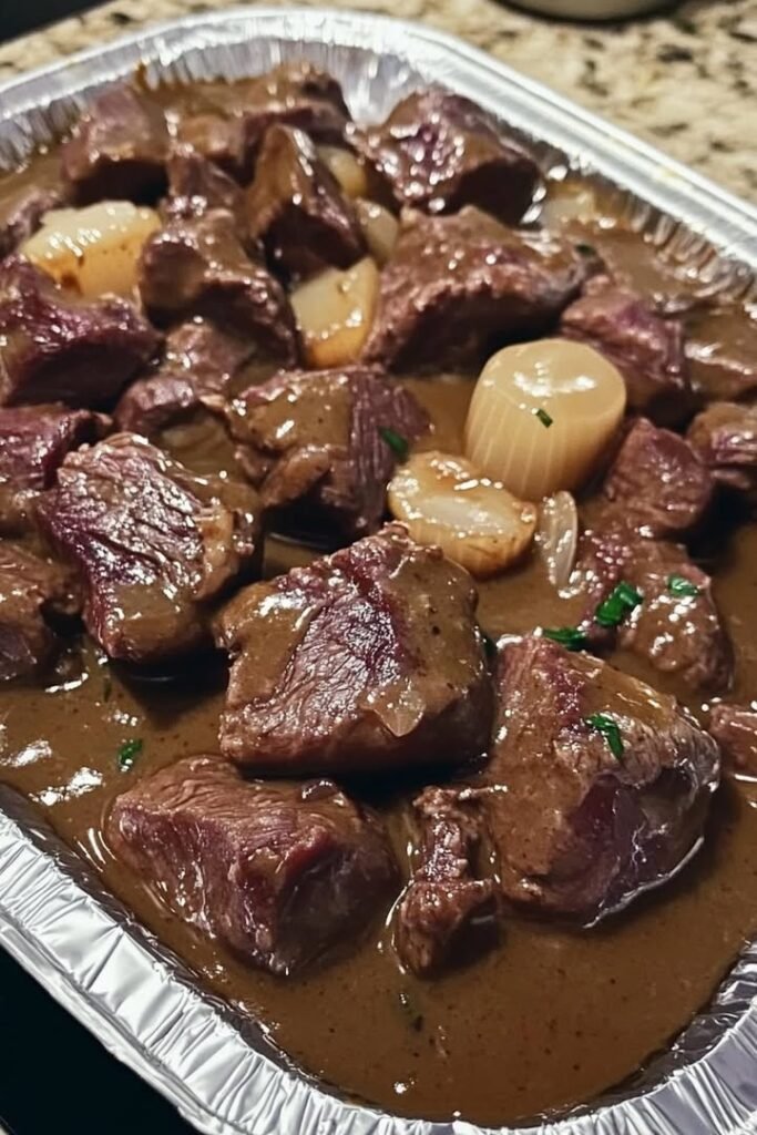 No Peek Beef Tips for Dinner Ingredients: 2 lbs stew meat 1 can cream of mushroom soup 1 packet brown gravy mix 1 envelope beefy onion soup mix 1 can …