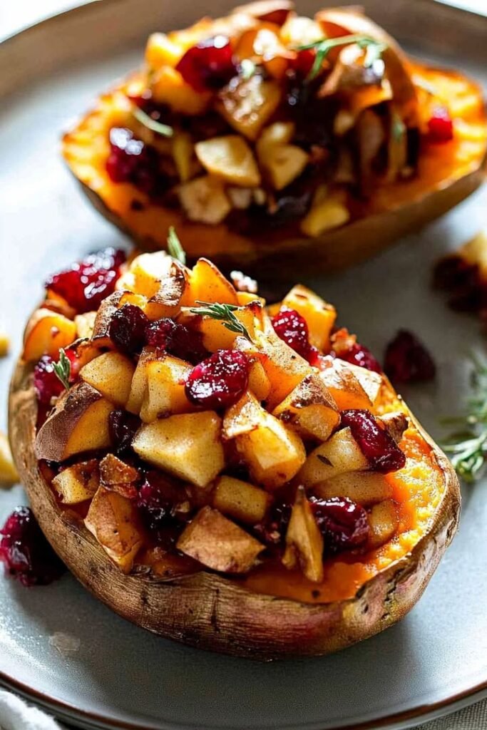 Cranberry Apple Twice-Baked Sweet Potatoes Ingredients: 4 medium sweet potatoes 1 tablespoon olive oil 1/2 cup dried cranberries 1 large apple, peeled, cored, and diced 2 tablespoons maple syrup 1/2 …