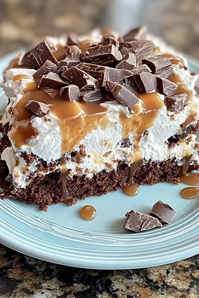 Better Than Six Cake Ingredients: 1 box German chocolate cake mix 1 can sweetened condensed milk 1 container Cool Whip about half of the container 2 XL Heath bars crushed …