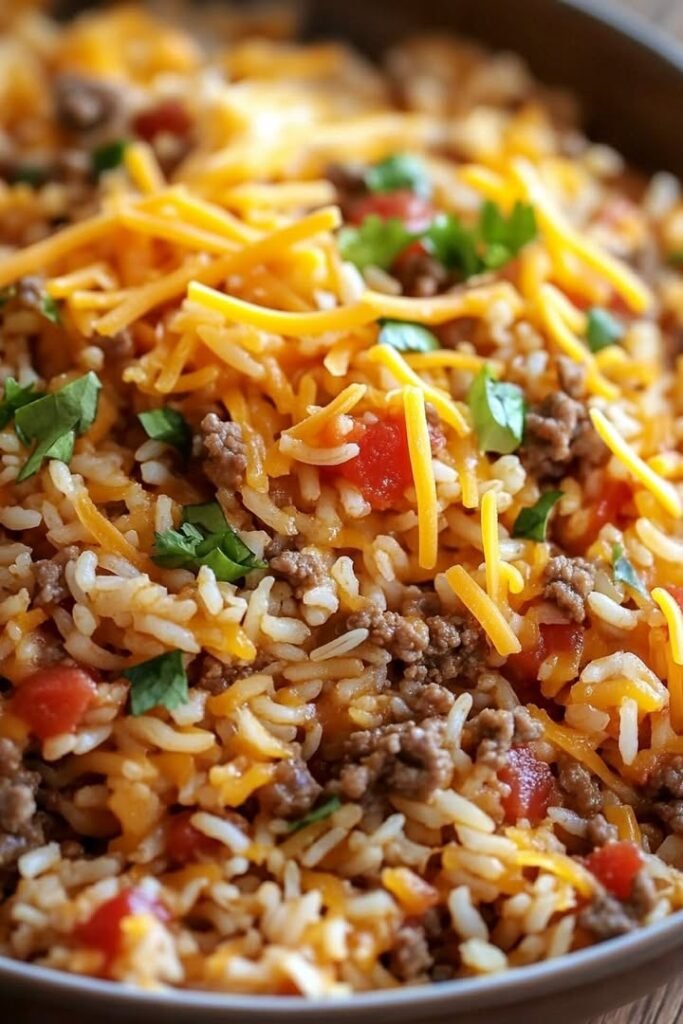 Taco Rice Ingredients: 1 pound ground beef 1 packet taco seasoning 2 cups water 2 cups Minute Rice, uncooked 1 cup salsa 1 cup shredded cheddar cheese Instructions: In a …