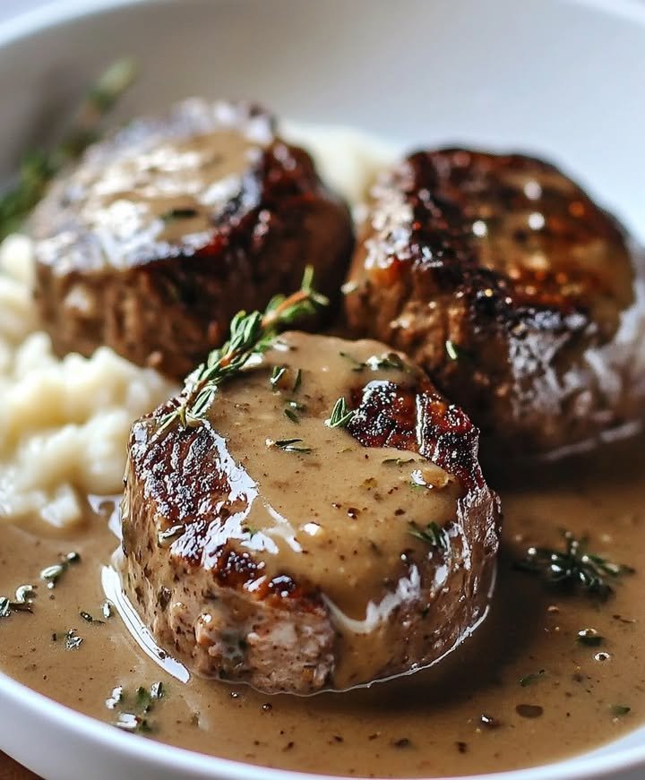 Herb-Crusted Beef Medallions with Gravy Recipe 數 Ingredients: For the beef: 6 beef medallions filet or tenderloin cuts 2 tbsp olive oil 2 tsp fresh thyme leaves 1 tsp salt …