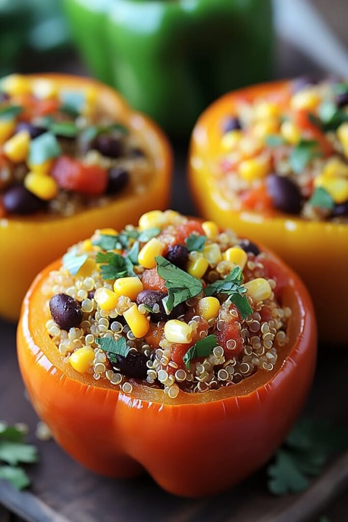 Stuffed Bell Peppers with Quinoa and Black Beans Ingredients: 4 large bell peppers any color, tops removed and seeds discarded 1 cup cooked quinoa 1 can black beans, drained and …