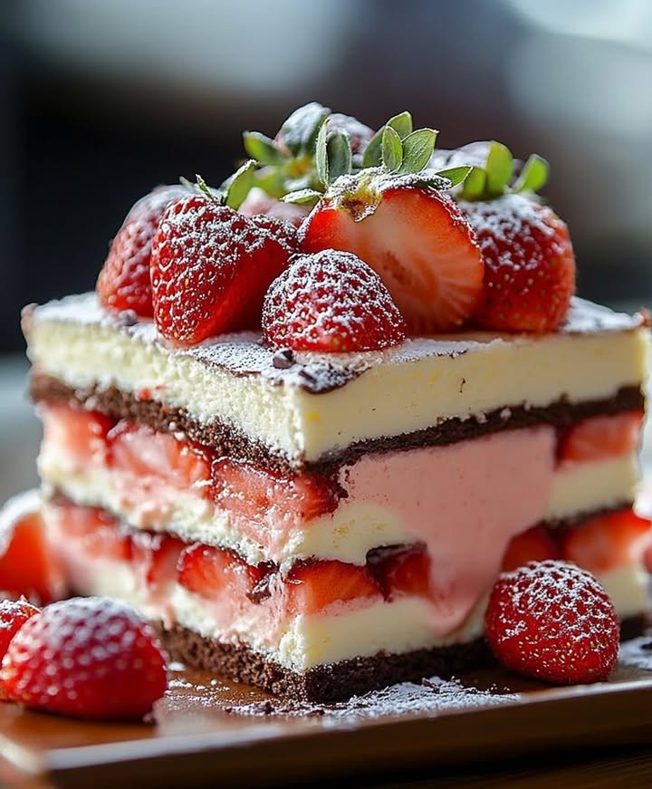 Strawberry and Chocolate Layered Cake Ingredients: 2 chocolate sponge cakes 1 cup fresh strawberries, sliced 2 cups whipped cream 1 cup strawberry mousse 100g dark chocolate, chopped 1/2 cup melted …