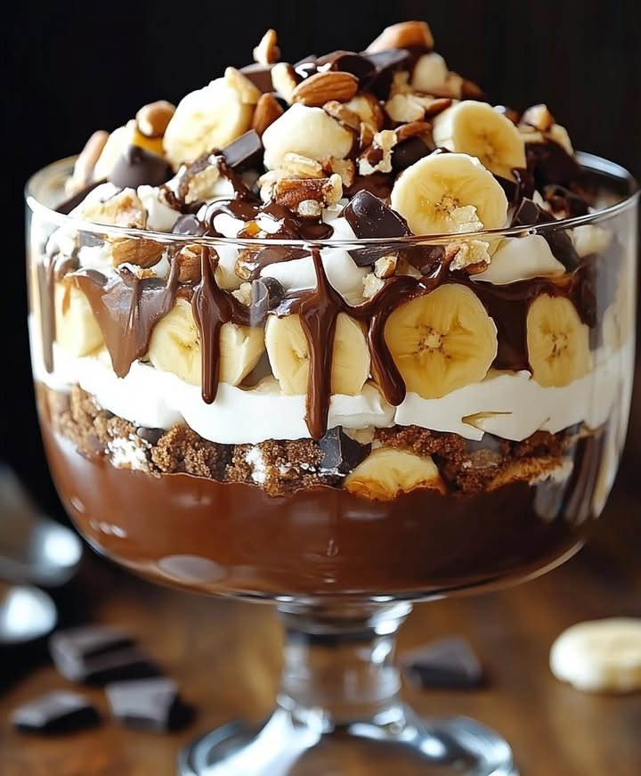 Banana Caramel Chocolate Trifle Ingredients: 2 cups chocolate pudding 2 bananas, sliced 1 cup caramel sauce 1 cup whipped cream 1 cup crushed cookies or brownie chunks 1/2 cup melted …