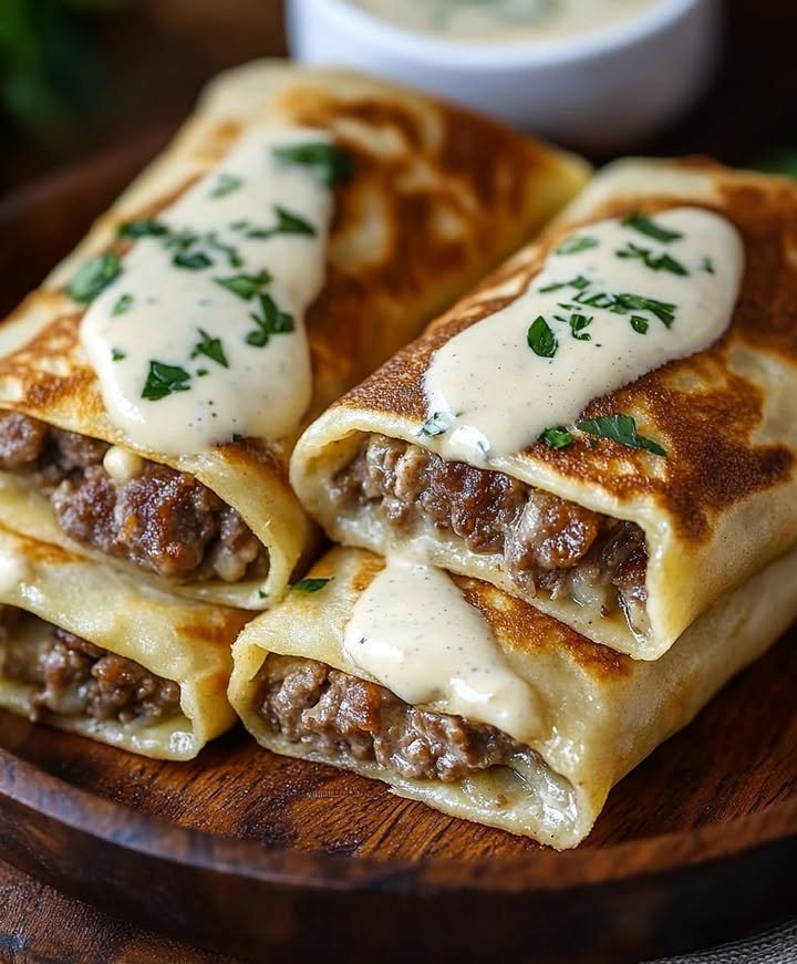Beef-Stuffed Crepes with Creamy Sauce Ingredients: