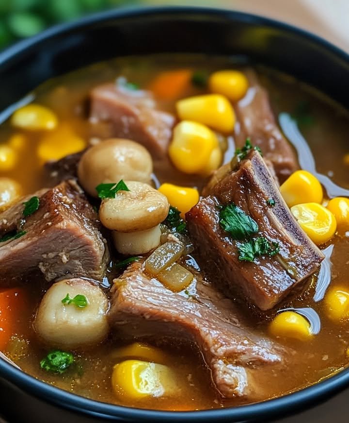 Hearty Pork Rib Soup with Corn & Mushrooms Ingredients: – Pork ribs – Fresh corn kernels – Sliced mushrooms – Onion, chopped – Garlic, minced – Carrots, diced – Celery, …