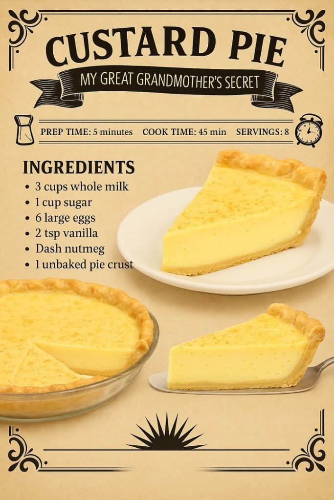 Custard Pie You have to try this Custard Pie! Its creamy, comforting, and so easy to make. Perfect for a cozy family dessert on weekends. Trust me, itll become a …