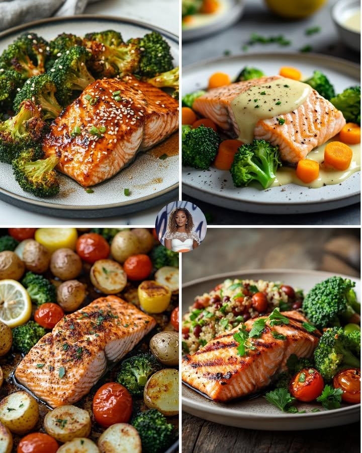 One-Skillet Garlicky Salmon & Broccoli Ingredients: Salmon fillets Broccoli florets Garlic Olive oil Lemon juice Red pepper flakes optional Salt and pepper Note: A simple and nutritious meal combining protein-rich …