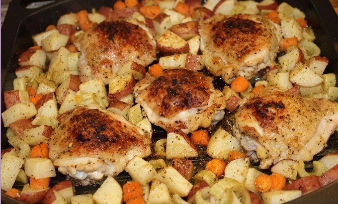 Crispy Rosemary Chicken and Fries Ingredients: 4 bone-in, skin-on chicken thighs4 medium potatoes, cut into fries2 tbsp olive oil2 tbsp fresh rosemary, chopped4 garlic cloves, minced1 tsp paprika1/2 tsp onion …