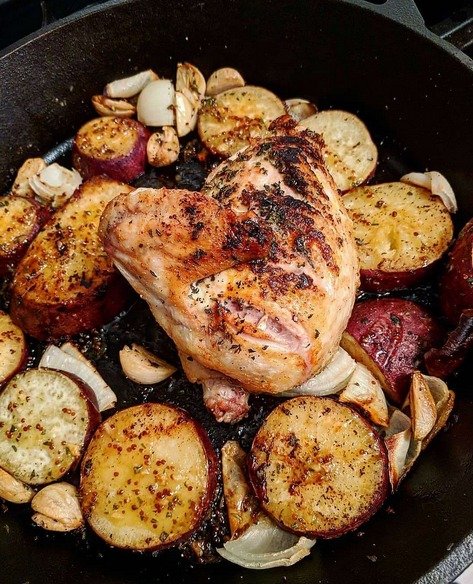Sheet Pan Harissa Chicken Dinner Ingredients: 4 boneless, skinless chicken thighs2 cups baby potatoes, halved1 cup bell peppers, sliced1/2 cup red onion, sliced2 tbsp olive oil2 tbsp harissa paste1 tsp …