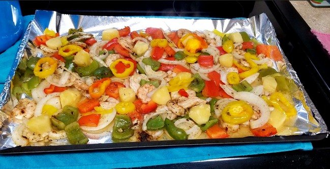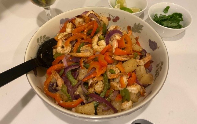 Sheet Pan Shrimp Fajitas Ingredients: 1 lb large shrimp, peeled and deveined3 bell peppers red, yellow, and green, sliced1 large onion, sliced2 tablespoons olive oil1 tablespoon chili powder1 teaspoon cumin1 …