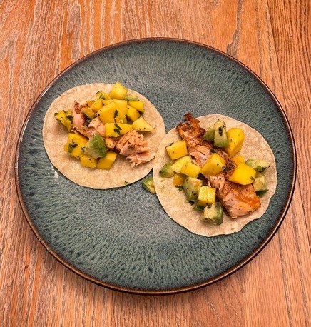Blackened Salmon Tacos with Chunky Mango Avocado Salsa яен Ingredients: For the Salmon: 1 lb salmon fillets 1 tbsp olive oil 1 tsp paprika 1/2 tsp garlic powder 1/2 tsp …