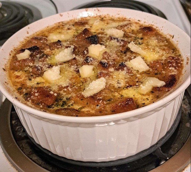 French Onion Soup Gratinée Ingredients: 4 large yellow onions, thinly sliced 3 tbsp olive oil or vegan butter 2 cloves garlic, minced 1 tbsp all-purpose flour optional for thickening 1/2 …