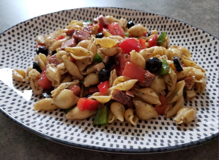 Antipasto Pasta Salad Ingredients: 12 oz rotini or bow tie pasta, cooked and cooled 1 cup cherry tomatoes, halved 1/2 cup red onion, thinly sliced 1/2 cup black olives, sliced …