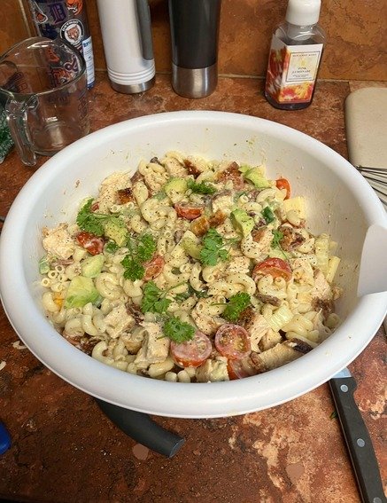 Chicken Club Pasta Salad Ingredients: 12 oz rotini or penne pasta, cooked and cooled 2 cups cooked chicken breast, diced 1/2 cup cherry tomatoes, halved 1/2 cup cucumber, diced 1/2 …