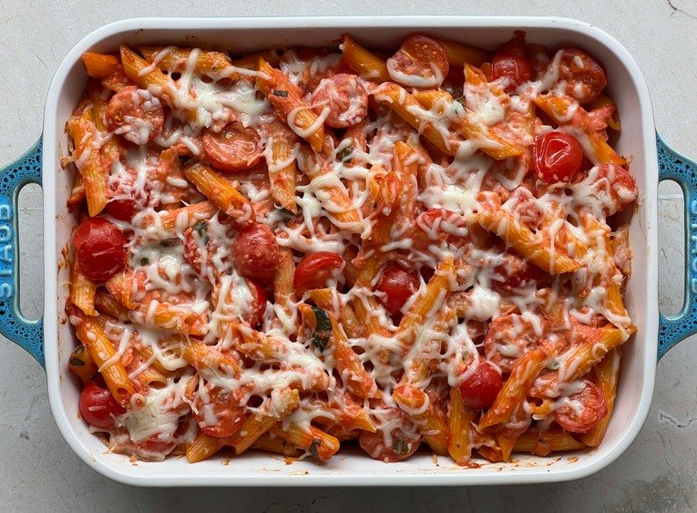 Creamy Pasta Bake with Cherry Tomatoes and Basil Ingredients: 12 oz penne or rigatoni pasta, cooked al dente 1 tbsp olive oil 2 garlic cloves, minced 1 pint cherry tomatoes, …
