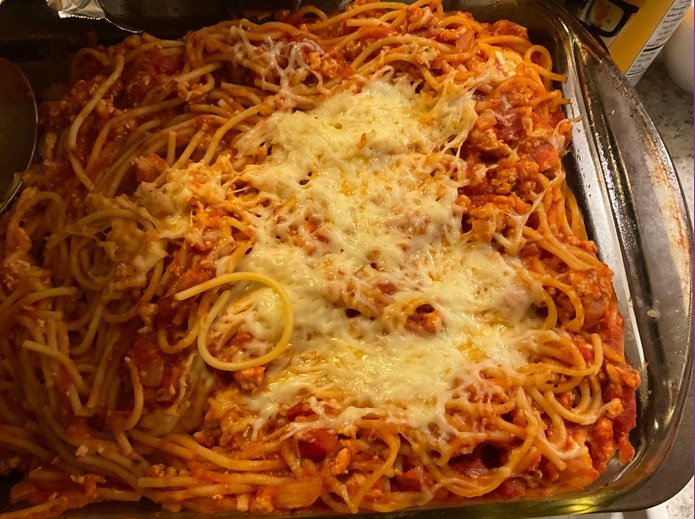 Baked Spaghetti Ingredients: 12 oz spaghetti, cooked and drained 1 lb ground beef 1 medium onion, diced 2 cloves garlic, minced 24 oz marinara sauce 1 tsp Italian seasoning 1 …