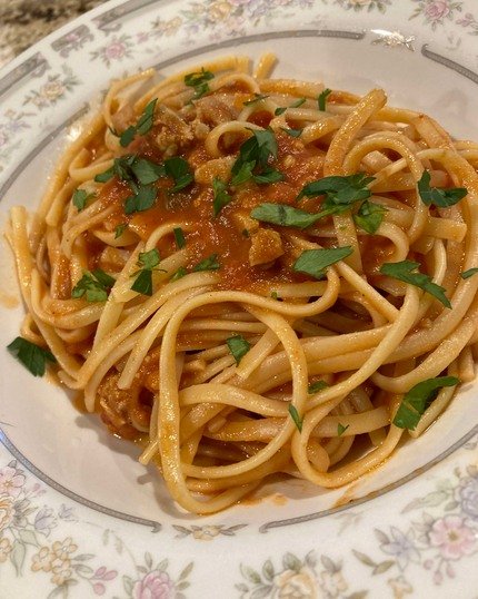Chef Johns Spaghetti with Red Clam Sauce Ingredients: 1 lb spaghetti 2 tbsp olive oil 4 cloves garlic, minced 1 28 oz can crushed tomatoes 1/2 cup white wine optional, …