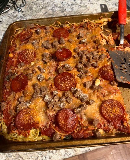 Spaghetti Pizza Ingredients: 16 oz spaghetti,