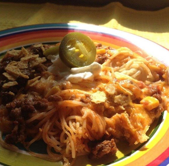 Taco Spaghetti Bake Ingredients: 12 oz spaghetti, cooked and drained 1 lb ground beef or turkey 1 packet taco seasoning 1 14 oz can diced tomatoes, drained 1 cup black …