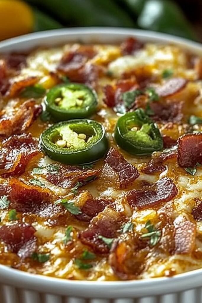 Bacon Jalapeño Texas Trash Dip Ingredients: 8 ounces cream cheese, softened 1 cup sour cream 2 cups shredded cheddar cheese 4 slices bacon, cooked and crumbled 2 jalapeños, diced adjust …