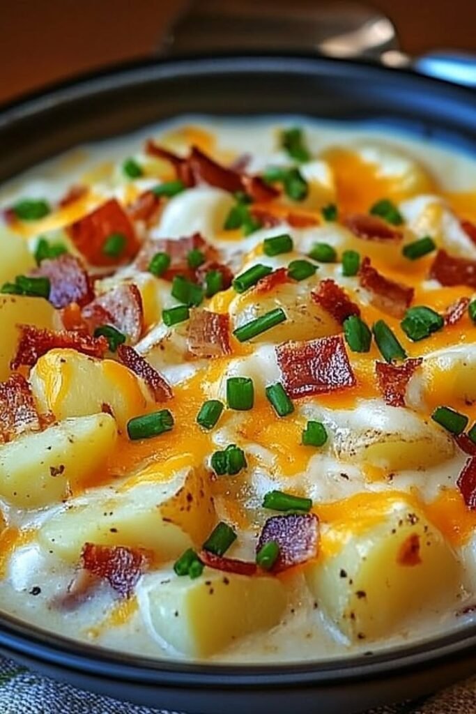 Loaded Baked Potato Soup with a Twist Ingredients: 4 large russet potatoes, peeled and diced 1 onion, diced 4 cloves garlic, minced 4 cups chicken broth 1 cup heavy cream …