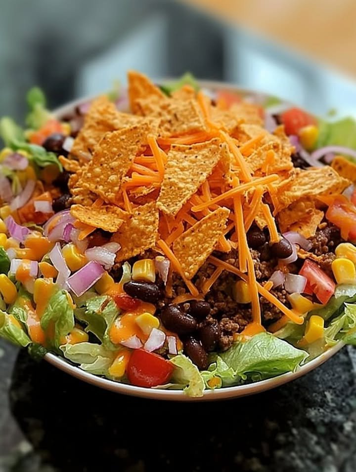 Doritos Taco Salad Ingredients: 1 lb ground beef or ground turkey for a lighter option 1 packet taco seasoning mix 6 cups chopped romaine or iceberg lettuce 1 can black …