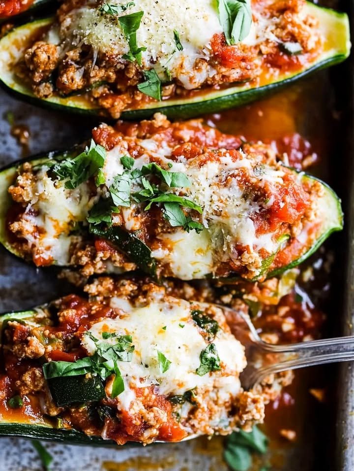 Lasagna Stuffed Zucchini Boats Ingredients: 1 lb ground chicken 1 red bell pepper, diced 24 oz marinara sauce 8 oz ricotta cheese 1 1/2 cups spinach, chopped 4 garlic cloves, …