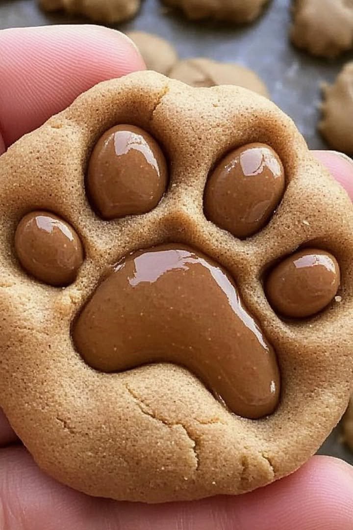 Remove from the oven and immediately press one chocolate chip in the center of each cookie, along with three more for the “”toes”” of the paw print.