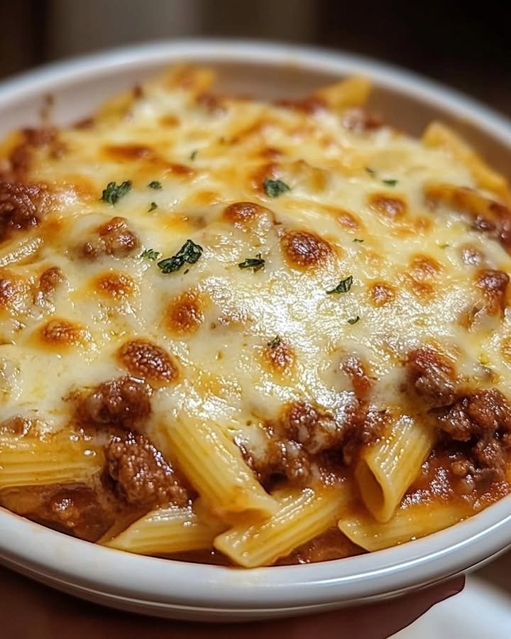 Cheesy Baked Penne Pasta with Meat