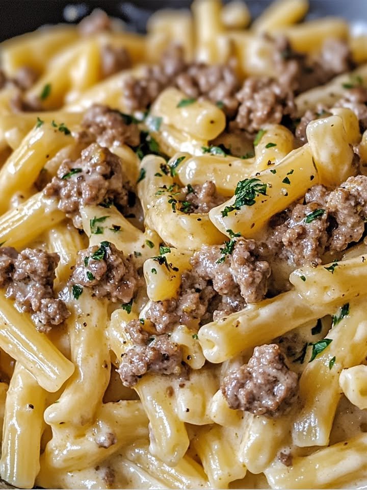 #GroundBeefPasta #CreamyAlfredo #ComfortFood #EasyDinner #PastaLovers