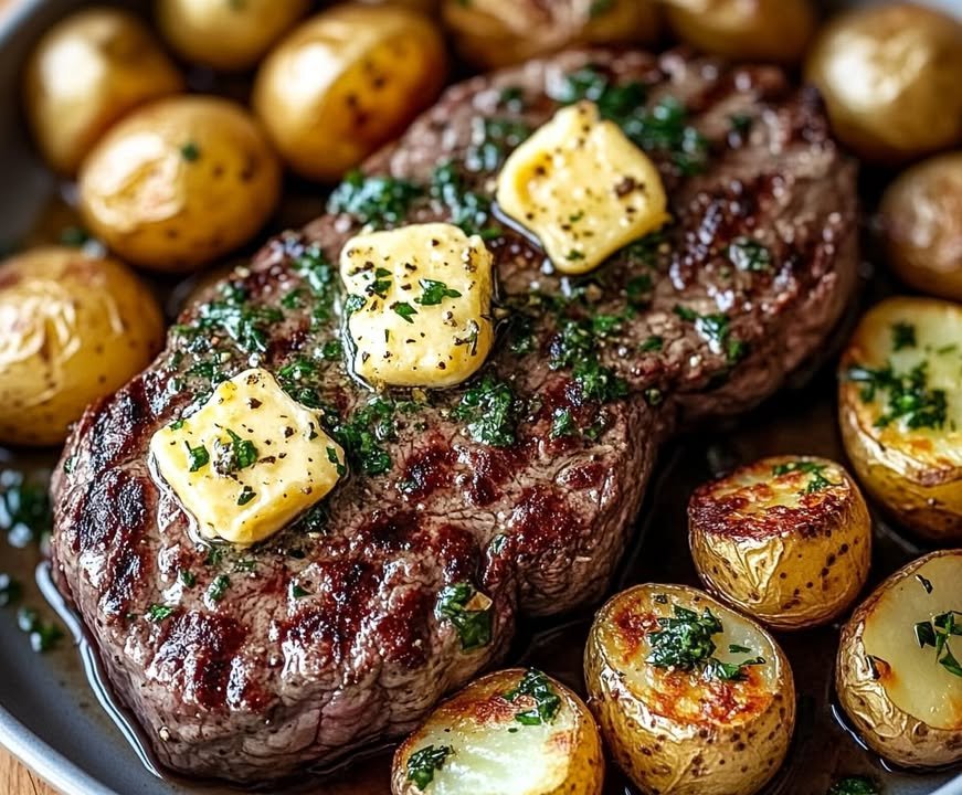 Garlic Herb Butter Steak with Roasted Potatoes