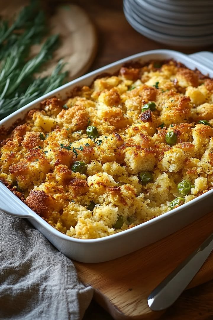 Bake: Transfer the dressing mixture to the prepared baking dish, spreading it evenly. Bake uncovered in the preheated oven for 30-40 minutes, or until the top is golden brown and the dressing is set.