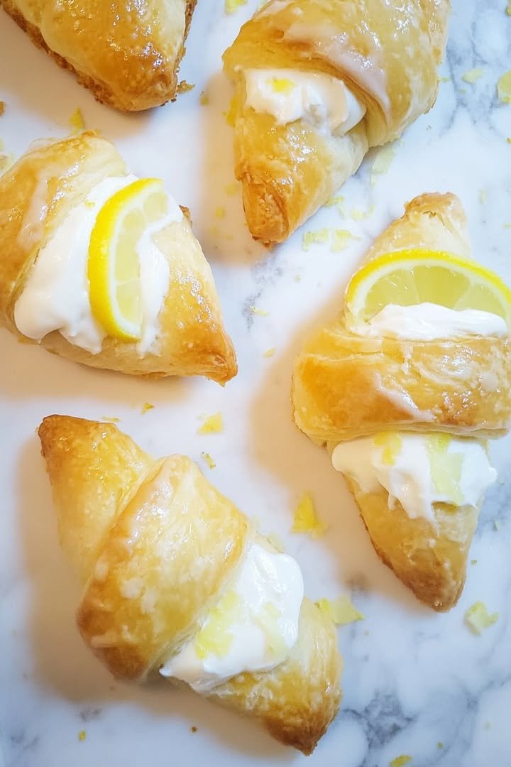 Soft and flaky crescent rolls filled with a creamy, tangy lemon filling, topped with a sweet lemon glaze. Perfect for breakfast, brunch, or dessert!