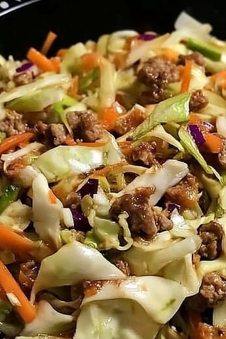 Drain any excess fat from the cooked meat and add it to the pan with the vegetables. Stir to combine. If desired, add a touch more soy sauce for flavor.