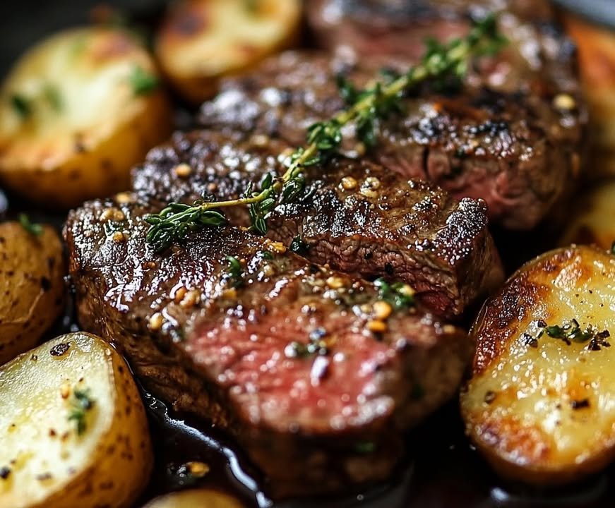 Pan-Seared Steak with Garlic Butter and Roasted Potatoes 凜