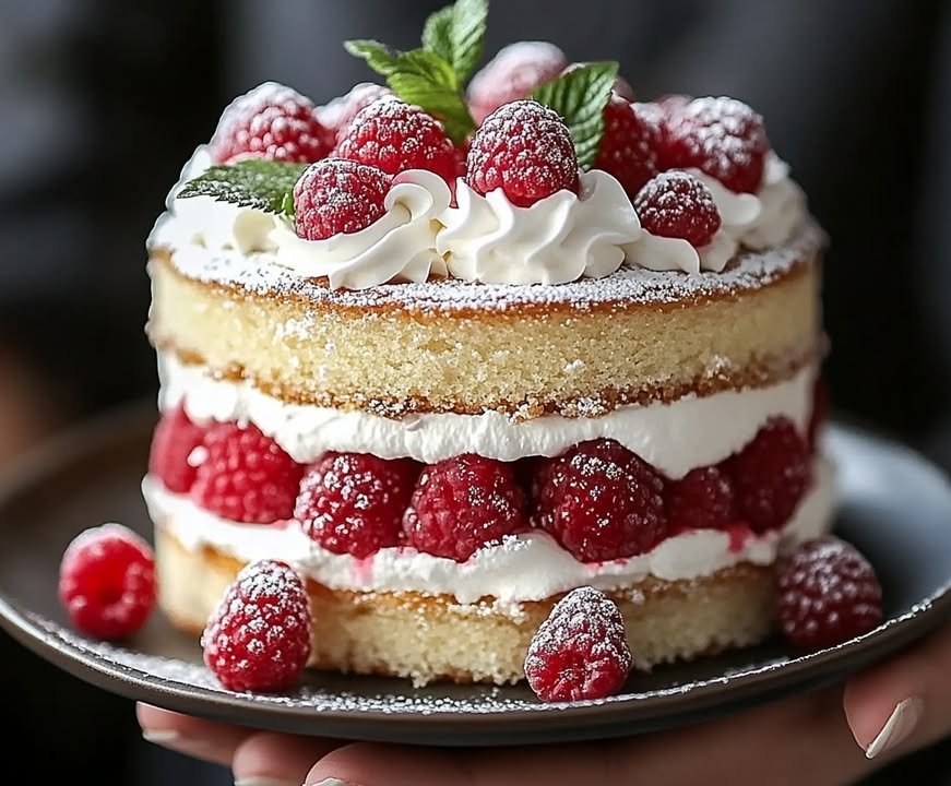 Elegant, light, and bursting with fresh raspberries, this layered cake is a showstopper for any celebration!