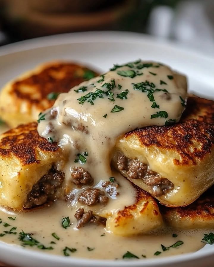 Savory Stuffed Pancakes with Creamy Gravy 丹